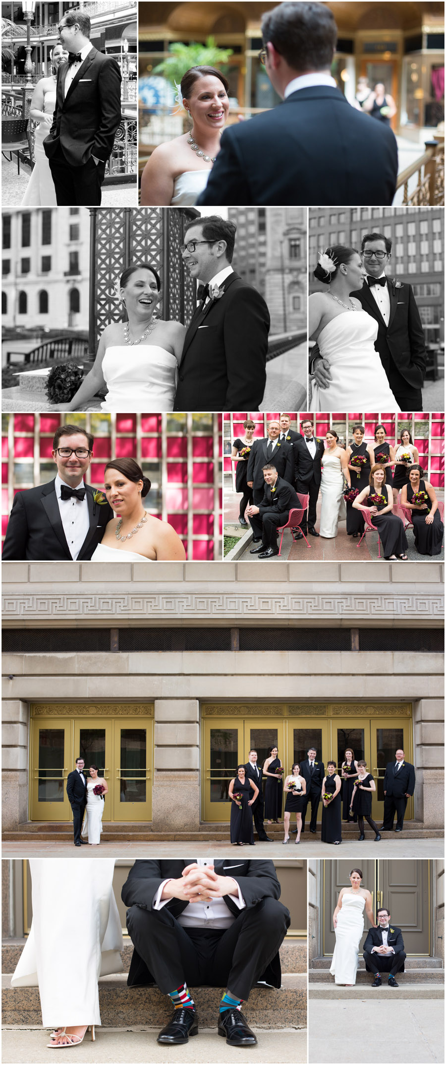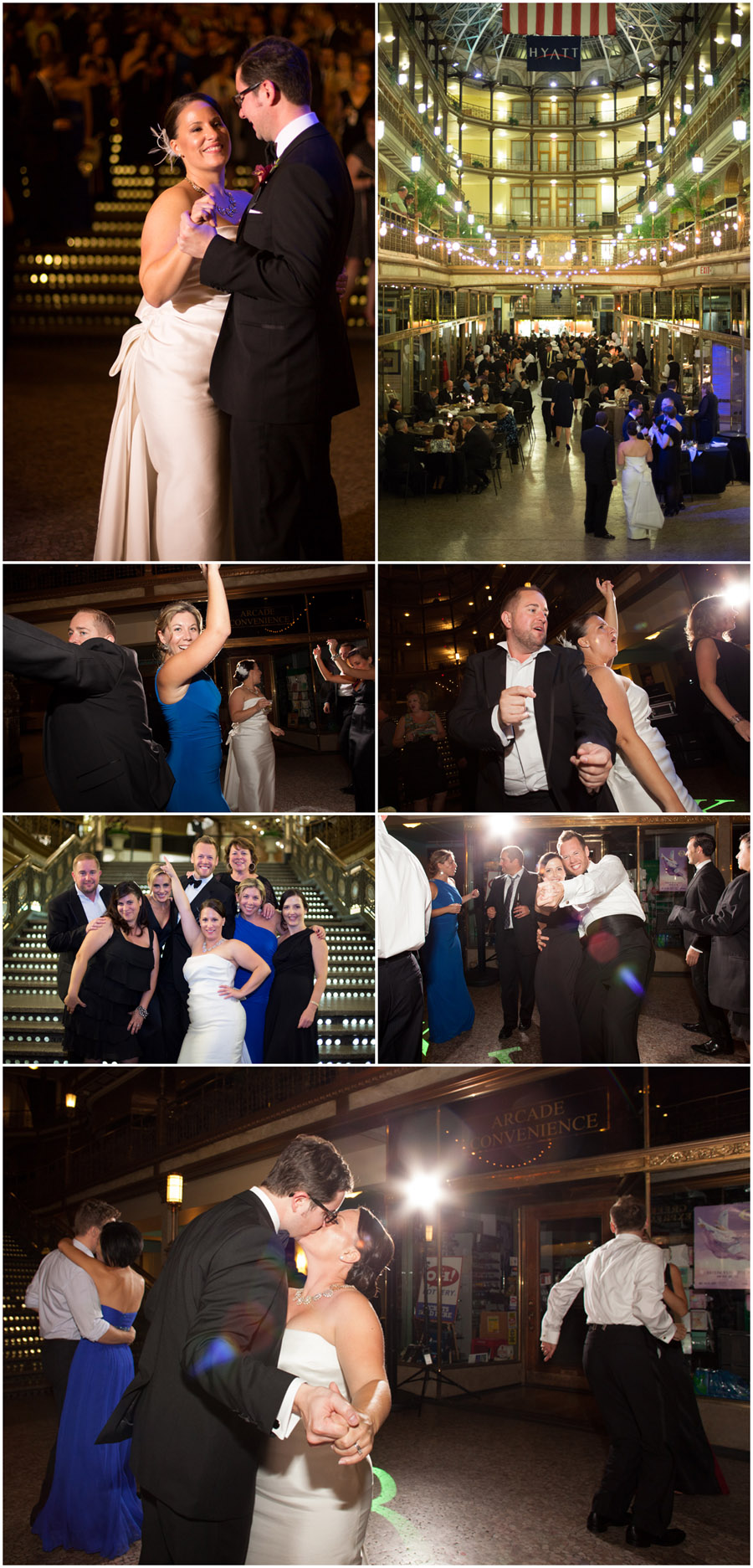 They had an evening wedding at the Old Arcade a few weeks back. Couldn’t have asked for a more perfect day in downtown Cleveland. We were able to wander the streets and have some fun after their first look on the Old Arcade bridge. The ceremony went great. There was even a round of applause from everybody watching through the windows of the Chocolate Bar! Once the rings were exchanged and “I do’s” were said the party got started and everybody had a great time. I even managed to be a wedding guest for a while.